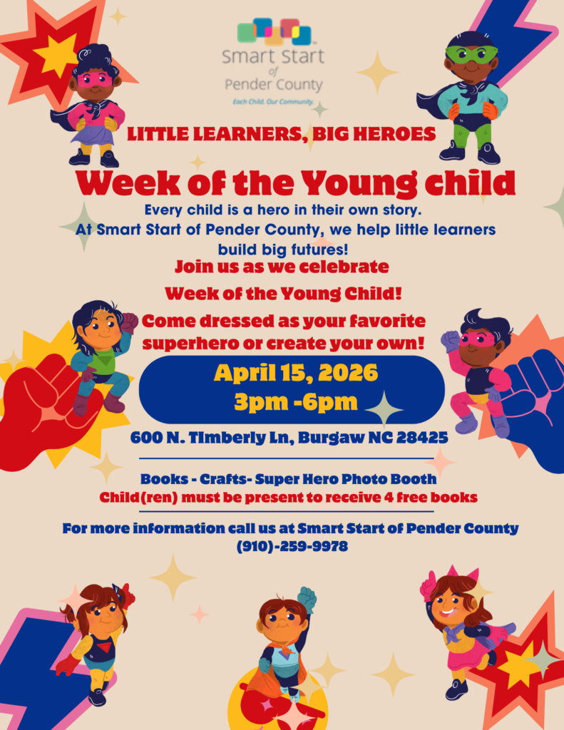 Smart Start of Pender County, Inc. administers Smart Start Funds in Pender County. We work in collaboration with several local agencies to serve children 0-5 in the community through child care, health care, and family support services. We offer a variety of services in support of parents and providers with the goal of promoting quality childcare in all of Pender County.